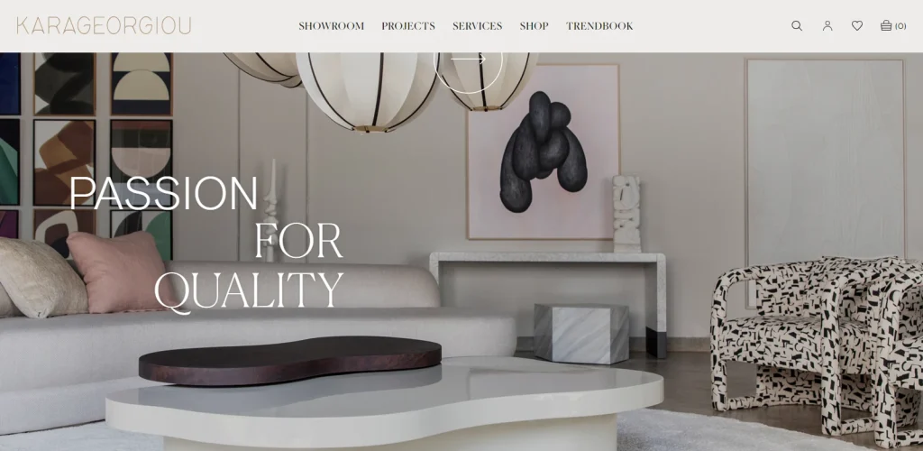 Overall, considering the Greek preference for timeless aesthetic, Karageorgiou presents one of the best examples of interior design websites on this list.
